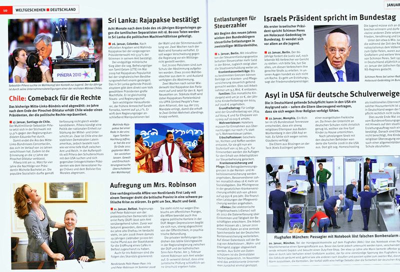 Schnell und aktuell wie kein anderer dokumentiert der "Chronik Jahresrückblick" bereits Anfang Januar das komplette Geschehen des Vorjahres. Dabei zeichnet sich der Marktführer wie immer durch Themenvielfalt, redaktionelle Qualität, Vollständigkeit und Aktualität aus.