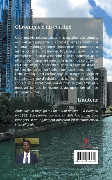 Un « machin microscopique », c'est ainsi que certains ont qualifié la pandémie du Covid-19, sans se douter que ce serait un étranger non désirable et un meurtrier par la même occasion. Abdoulaye M'Begniga témoin de la première heure du développement de la pandémie, nous offre un récit caractéristique de la gestion du coronavirus en Chine et plus précisément dans la province d'Anhui où il résidait en tant qu'étudiant au moment des faits. Cette chronique est un brassage multilingue qui dépeint les points de vue d'individus qui, confinés, laissent libre cours à leur esprit pour fouiller dans la pandémie et y retrouver ce que le monde devra apprendre afin de demeurer humain.