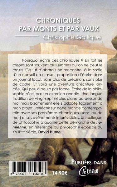 L'objet de cet ouvrage est d'écrire des chroniques philosophiques au fil de l'actualité pendant cinq années, en suivant la méthode de David Hume, c'est-à-dire examiner avec attention la base de nos jugements, et éclairer l'actualité à la lumières des penseurs classiques.