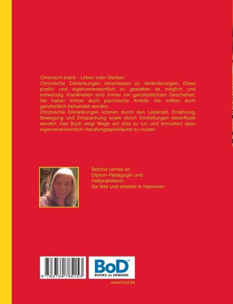 Chronisch krank - Leben oder SterbenChronische Erkrankungen veranlassen zu Veränderungen. Diese positiv und eigenverantwortlich zu gestalten ist möglich und notwendig. Krankheiten sind immer ein ganzheitliches Geschehen. Sie haben immer auch psychische Anteile. Sie sollten auch ganzheitlich behandelt werden. Chronische Erkrankungen können durch den Lebensstil, Ernährung, Bewegung und Entspannung sowie durch Einstellungen beeinflusst werden. Das Buch zeigt Wege auf, dies zu tun und ermuntert dazu, eigenverantwortlich Handlungsspielräume zu nutzen.