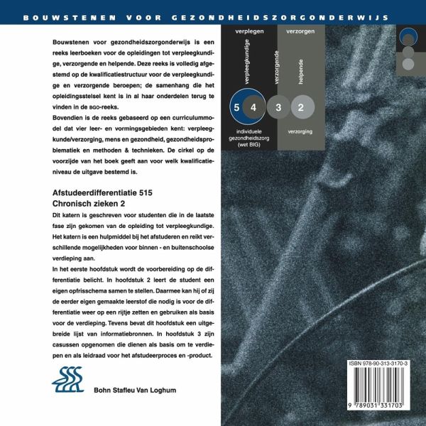 Differentiatiekatern voor studenten die in de laatste fase zijn gekomen van de opleiding tot verpleegkundige niveau 5. Het katern is een hulpmiddel bij het afstuderen en reikt verschillende mogelijkheden voor binnen- en buitenschoolse verdieping aan. In de casuïstiek in dit katern komen de eindtermen van deelkwalificatie 515 meerdere malen op verschillende wijze aan bod. Gedurende de BPV toont de deelnemer dat hij/zij in staat is als verpleegkundige zorg te verlenen aan chronisch zieken (515.03). Doelstellingen van dit katern: verdiepen van kennis m.b.t. chronisch zieken. Verder dient de student vaardig te worden in het professioneel begeleiden van chronisch zieken en ervaringen m.b.t. zorgvragers te vertalen naar professioneel gedrag in nieuwe zorgsituaties binnen de zorg voor chronisch zieken.