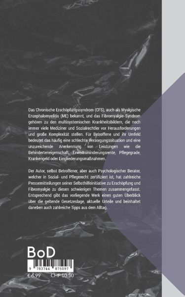 Das Chronische Erschöpfungssyndrom (CFS), auch als Myalgische Enzephalomyelitis (ME) bekannt, und das Fibromyalgie-Syndrom gehören zu den multisystemischen Krankheitsbildern, die noch immer viele Mediziner und Sozialrechtler vor Herausforderungen und große Komplexität stellen. Für Betroffene und ihr Umfeld bedeutet das häufig eine schlechte Versorgungssituation und eine unzureichende Anerkennung von Leistungen wie die Behinderteneigenschaft, Erwerbsminderungsrente, Pflegegrade, Krankengeld oder Eingliederungsmaßnahmen.Der Autor, selbst Betroffener, aber auch Psychologischer Berater, welcher in Sozial- und Pflegerecht zertifiziert ist, hat zahlreiche Pressemitteilungen seiner Selbsthilfeinitiative zu Erschöpfung und Fibromyalgie zu diesen schwierigen Themen zusammengefasst. Entsprechend gibt das vorliegende Werk einen guten Überblick über die geltende Gesetzeslage, aktuelle Urteile und beinhaltet daneben auch zahlreiche Tipps aus der Praxis, wie man sich selbst unterstützen kann und neben den konservativen Therapien ergänzende Angebote der Ernährungsberatung oder des Coachings für sich nutzt. Ziel soll es sein, Patienten und Angehörige zu einem resilienteren Umgang mit der Krankheit zu befähigen und sie zur Aktivierung im Alltag zu motivieren.