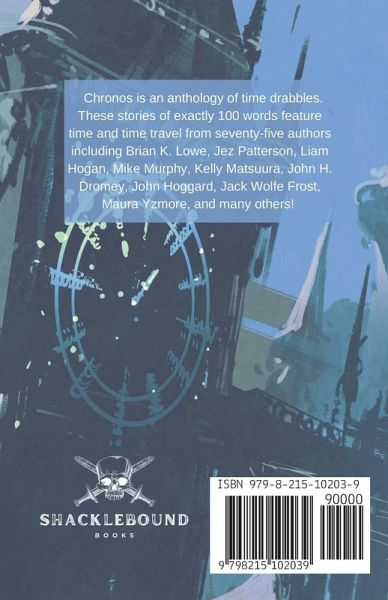 Chronos is an anthology of drabbles (a story told in exactly one-hundred words) themed around time. Seventy-five talented authors from around the world come together to present ninety-eight stories of time, time travel, time zones, time manipulation, flash-forwards, space-time, time freezes, and so many other variations on the theme.