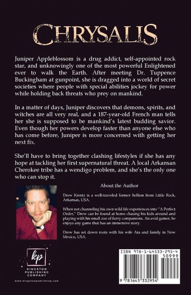 Juniper Appleblossom is a drug addict, self-appointed rock star, and unknowingly one of the most powerful Enlightened ever to walk the Earth. After meeting Dr. Tuppence Buckingham at gunpoint, she is dragged into a world of secret societies where people with special abilities jockey for power while holding back threats who prey on mankind. In a matter of days, Juniper discovers that demons, spirits, and witches are all very real, and a 187-year-old French man tells her she is supposed to be mankind's latest budding savior. Even though her powers develop faster than anyone else who has come before, Juniper is more concerned with getting her next fix. She'll have to bring together clashing lifestyles if she has any hope at tackling her first supernatural threat. A local Arkansan Cherokee tribe has a wendigo problem, and she's the only one who can stop it.