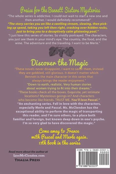 Pascal d'Onscon, once terrorizing wine fraud scammers across southern France, is now pushing papers for the French bureaucracy in the modern Cité du Vin in Bordeaux. But not for long. He dreams of being a vintner, his hands in the dirt, the grape on his tongue, blending his very own creation: a bottle of wine with his own label. Pascal has spent his life surrounded by French wine and winemakers. The idea that he could run his very own vineyard is tantalizing and keeps him up at night, dreaming of finding a small vineyard he can afford, somewhere in southwest France. His companion, Merle Bennett, the middle of five lawyer sisters, has her own aspirations. Two tiny cottages are begging to be renovated for summer rentals. Will the person camping in the back garden scuttle her plans? When Pascal puts an abandoned vineyard in his sights, he doesn't want to let go. But Château des Corbeaux, owned by two Brits, has a complicated history. Not just recently with vandalism and hostile neighbors, but long ago secrets that resurface. Reluctant sellers, his own finances, and more threaten to derail him as he struggles to work out a way to make his dream a reality.