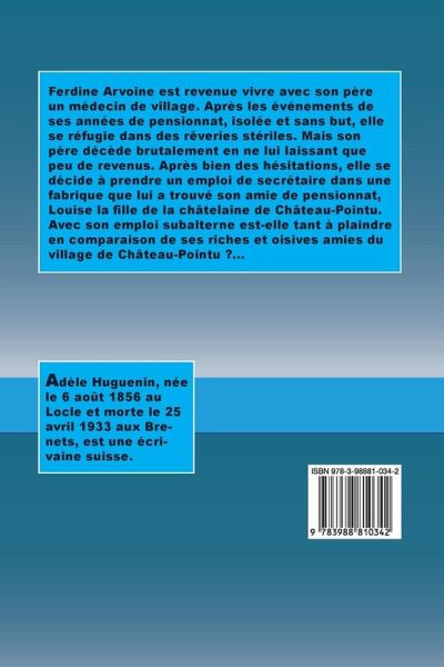 Ferdine Arvoine est revenue vivre avec son père un médecin de village. Après les événements de ses années de pensionnat, isolée et sans but, elle se réfugie dans des rêveries stériles. Mais son père décède brutalement en ne lui laissant que peu de revenus. Après bien des hésitations, elle se décide à prendre un emploi de secrétaire dans une fabrique que lui a trouvé son amie de pensionnat, Louise la fille de la châtelaine de Château-Pointu. Avec son emploi subalterne est-elle tant à plaindre en comparaison de ses riches et oisives amies du village de Château-Pointu ?...