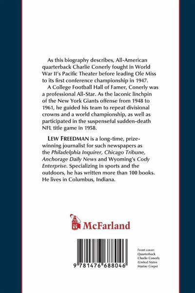 All-American quarterback Charlie Conerly's college career was interrupted by World War II. He started at University of Mississippi in 1942, fought in the Battle of Guam in 1944, then led Ole Miss to their first conference championship in 1947. He went on to play for the New York Giants from 1948 to 1961, ultimately leading them to an NFL title. A College Football Hall of Famer, Conerly was a professional All-Star and the lynchpin of the Giants offense at time when the team was loaded with Hall of Famers who unduly overshadowed him during his heyday. New York won repeat divisional crowns under the soft-spoken Conerly and participated in the suspenseful, first-ever sudden death NFL title game in 1958. This first-ever full-length biography chronicles his life and career in detail.