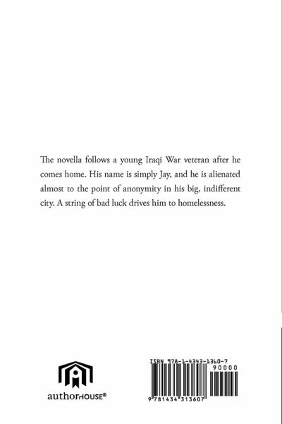 The novella follows a young Iraqi War veteran after he comes home. His name is simply Jay, and he is alienated almost to the point of anonymity in his big, indifferent city.