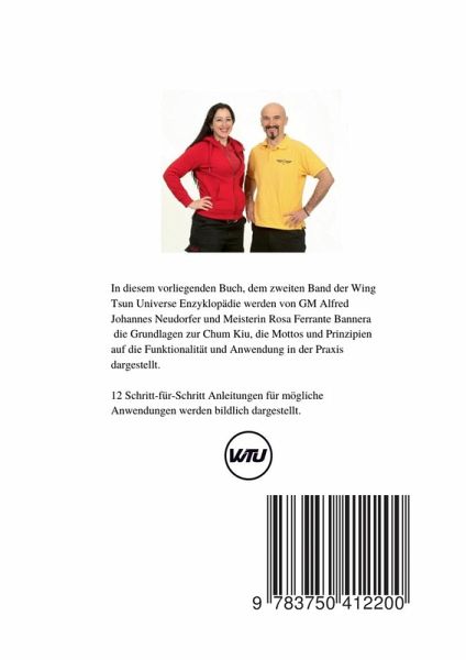 In diesem vorliegenden Buch, dem zweiten Band der Wing Tsun Universe Enzyklopädie werden von GM Alfred Johannes Neudorfer und Meisterin Rosa Ferrante Bannera die Grundlagen der Chum Kiu im WTU Wing Tsun, die Mottos und Prinzipien auf die Funktionalität und Anwendung in der Praxis dargestellt. 12 Schritt-für-Schritt Anleitungen für mögliche Anwendungen werden bildlich dargestellt.