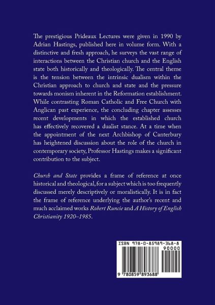 The Prideaux Lectures were given in 1990 by Adrian Hastings, published here in volume form. He surveys the range of interactions between the Christian church and the English state.