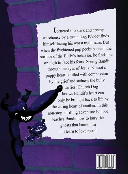 Cornered in a dark and creepy warehouse by a mean dog, K'noot finds himself caught in a nightmare. But when the frightened pup peeks beneath the surface of the Bully's behavior, he finds the strength to face his fears. Seeing Bandit through the eyes of Jesus, K'noot's puppy heart is filled with compassion by the grief and sadness the bully carries. Church Dog knows Bandit's heart can only be brought back to life by the caring heart of another. In this non-stop, thrilling adventure K'noot teaches Bandit how to bury the ghosts that haunt him and learn to love again!
