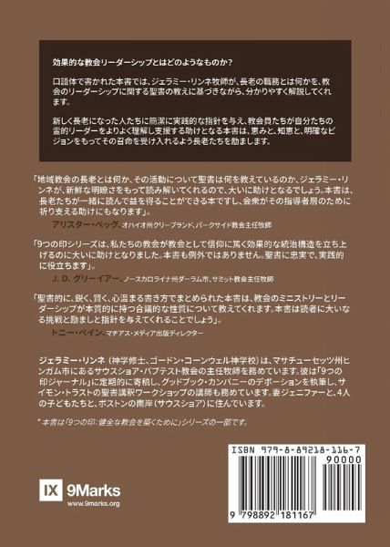What does effective church leadership look like? In this conversational book, pastor Jeramie Rinne sets forth an easy-to-understand "job description" for elders drawn from the Bible's teaching on church leadership. Offering practical guidance for new elders and helping church members better understand and support their spiritual leaders, this succinct volume will encourage elders to embrace their calling with grace, wisdom, and clarity of vision.