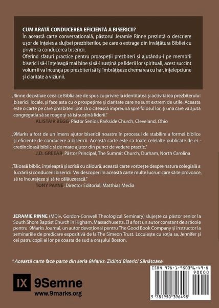 What does effective church leadership look like? In this conversational book, pastor Jeramie Rinne sets forth an easy-to-understand "job description" for elders drawn from the Bible’s teaching on church leadership. Offering practical guidance for new elders and helping church members better understand and support their spiritual leaders, this succinct volume will encourage elders to embrace their calling with grace, wisdom, and clarity of vision.