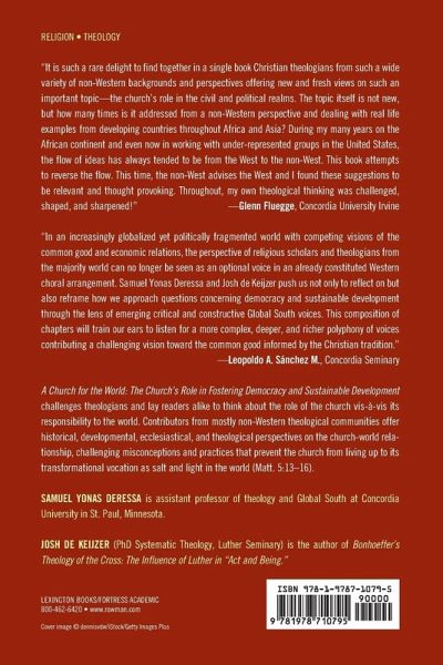 Foreword: Toward a Postcolonial "Inescapable Network of Mutuality" Gary M. Simpson Introduction: A Church for the World: The Church's Role in Fostering Democracy and Sustainable Development Samuel Yonas Deressa and Josh de Keijzer Part One: Historical Perspectives 1. Church and Development in Post-Colonial Africa: Revisiting African Development Plan and the Theology of Reconstruction through the Lens of the Capabilities Approach Samuel Yonas Deressa 2. Church and Development in Ethiopia: The Contribution of Gudina Tuma's Holistic Theology Samuel Yonas Deressa 3. On Human Flourishing: A Call for Public Responsibility in Contemporary Ethiopian Christianity Andrew D. DeCort Part Two: Developmental Perspectives 4. Church and Human Development: An Asian Perspective Lim Teck Peng 5 The Critical Role of the Church in the Development of Asia Delfo Canceran, OP Part Three: Ecclesiastical Perspectives 6. Church and Development in Nigerian Context: Theological Foundation, Practical Appraisal