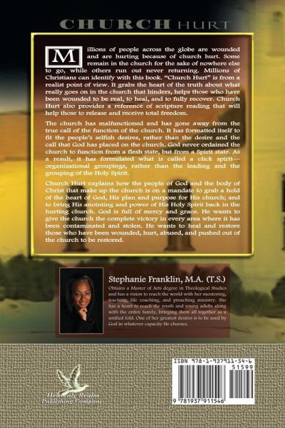 Millions of people across the globe are wounded and are hurting because of church hurt. Some remain in the church for the sake of nowhere else to go, while others run out never returning. Millions of Christians can identify with this book. "Church Hurt" is from a realist point of view. It grabs the heart of the truth about what really goes on in the church that hinders, helps those who have been wounded to be real, to heal, and to fully recover. Church Hurt also provides a reference of scripture reading that will help those to release and receive total freedom. The church has malfunctioned and has gone away from the true call of the function of the church. It has formatted itself to fit the people's selfish desires, rather than the desire and the call that God has placed on the church. God never ordained the church to function from a flesh state, but from a Spirit state. As a result, it has formulated what is called a click spirit-organizational groupings, rather than the leading and the grouping of the Holy Spirit. Church Hurt explains how the people of God and the body of Christ that make up the church is on a mandate to grab a hold of the heart of God, His plan and purpose for His church; and to bring His anointing and power of His Holy Spirit back in the hurting church. God is full of mercy and grace. He wants to give the church the complete victory in every area where it has been contaminated and stolen. He wants to heal and restore those who have been wounded, hurt, abused, and pushed out of the church to be restored.