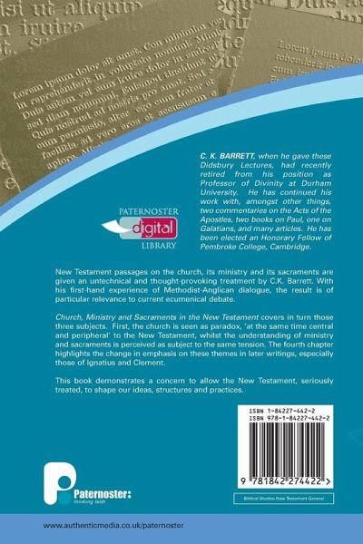 Barrett's book consists of a complete revision of the four chapters, of the Didsbury Lectures, given at the British Isles Nazarene College, Manchester. The chapter titles indicate the content: From Jesus to the Church; Ministry; Sacraments; and The Developing Community. Barrett properly points out that "the church is at the same time central and peripheral." Likewise, the church is provisional, temporary, penultimate-an interim solution for the time between the resurrection/ ascension of Jesus and the heaven of the church. He also correctly notes the possibility and danger of an ecclesiological as well as christological Apollinarianism. Consequently, he emphasizes the human nature of Christ and human dimensions of the church.