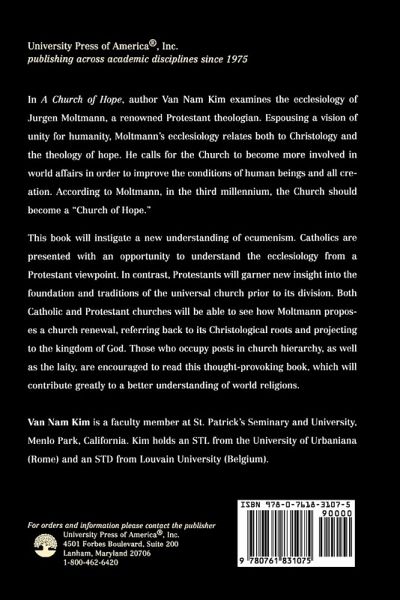 In A Church of Hope, author Van Nam Kim examines the ecclesiology of Jurgen Moltmann, a renowned Protestant theologian.