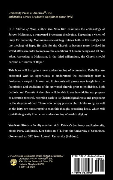 In A Church of Hope, author Van Nam Kim examines the ecclesiology of Jurgen Moltmann, a renowned Protestant theologian.