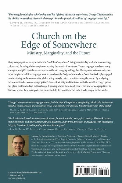 Most congregations today exist in what George Thompson calls the "middle of anywhere." They live comfortably with their surrounding culture, focusing their energies on serving the needs of their current members. These congregations have many strengths and gifts that they can exercise without changing a thing. But Thompson envisions a deeper, more prophetic call for congregations to explore the meaning of being in the world but not of it--a church on the "edge of somewhere." Thompson sees a church that is deeply engaged in ministering to the community while calling on others to commit to doing the same. By analyzing the interaction between a congregation's focus of identity and their stance with the world, Thompson has created a helpful grid for congregations to place themselves on today's cultural map. A congregation that sees itself as existing on the margins of society will look different than one that sees itself as embedded in society. A congregation that hears a call to serve the surrounding community will look different from one that focuses on its internal needs. Knowing where they stand now is the key for congregations to discover where they must go in the future to fully live out their call to be God's people in the world.