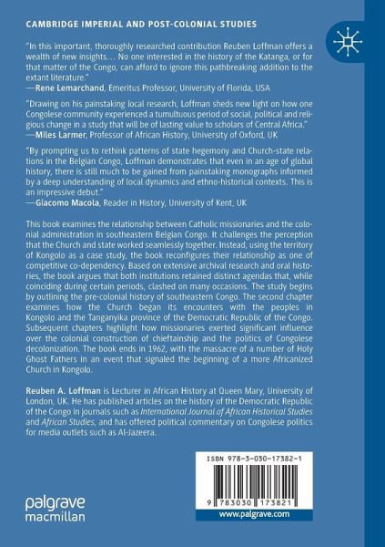 "Loffman's first monograph is a welcome addition to the history of Church and state relations in colonial Congo. This book contributes to ongoing academic debates on the region's pasts while shedding much-needed light on some of its neglected historiographic corners. ... Loffman's thoroughly documented monograph is a precious contribution to its field and will certainly stimulate future intellectual debates on colonial Central Africa. ... this monograph promises to stimulate, enrich and further our knowledge of Central Africa's recent political history." (Benoît Henriet, BMGN - Low Countries Historical Review, Vol. 135, 2020)