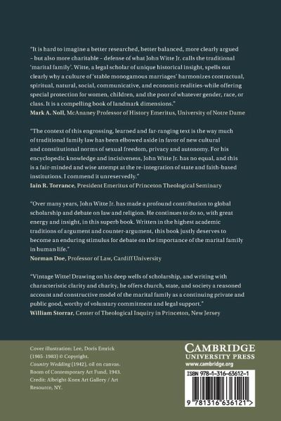 Introduction; 1. The first integrative Christian theories of family life: John Chrysostom and Augustine of Hippo; 2. Marriage as an office of nature and a sacrament of the church: Thomas Aquinas and Francisco Vitoria; 3. The marital family as social estate and covenant community: Martin Luther and John Calvin; 4. The domestic market: the family as matrix of modern economics; 5. The nature of family in seventeenth-century Christian thought: Hugo Grotius and John Selde; 6. The surprising liberal defense of the traditional marital family by enlightenment liberals; 7. The multidimensional family sphere: reconstructing traditional family teachings for modern liberal societies; 8. Why suffer the children? Overcoming the modern church's opposition to children's rights; 9. Why same-sex marriage should not lead to polygamy; 10. By the power vested in whom? What place for faith-based family laws in a liberal democracy?; 11. The dangers of private ordering; Concluding reflections.
