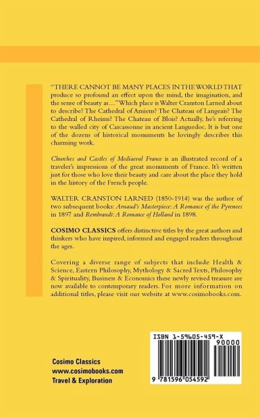 "There cannot be many places in the world that produce so profound an effect upon the mind, the imagination, and the sense of beauty as." Which place is Walter Cranston Larned about to describe? The Cathedral of Amiens? The Chateau of Langeais? The Cathedral of Rheims? The Chateau of Blois? Actually, he's referring to the walled city of Carcassonne in ancient Languedoc. It is but one of the dozens of historical monuments he lovingly describes this charming work. Churches and Castles of Mediaeval France is an illustrated record of a traveler's impressions of the great monuments of France. It's written just for those who love their beauty and care about the place they hold in the history of the French people. WALTER CRANSTON LARNED (1850-1914) was the author of two subsequent books: Arnaud's Masterpiece: A Romance of the Pyrenees in 1897 and Rembrandt: A Romance of Holland in 1898.