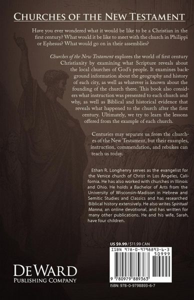 "Have you ever wondered what it would be like to be a Christian in the first century? What would it be like to meet with the church in Philippi or Ephesus? What would go on in their assemblies? Churches of the New Testament explores the world of first century Christianity by examining what Scripture reveals about the local churches of God's people. It examines background information about the geography and history of each city, as well as whatever is known about the founding of the church there. This book also considers what instruction was presented to each church and why, as well as Biblical and historical evidence that reveals what happened to the church after the first century. Ultimately, we try to learn the lessons offered from the example of each church. Centuries may separate us from the churches of the New Testament, but their examples, instruction, commendation, and rebukes can teach us today."