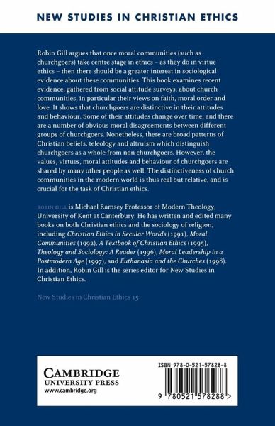 Robin Gill argues that moral communities should take center stage in ethics. This book examines recent evidence about church communities in relation to faith, moral order and love, and shows that churchgoers are distinctive in their attitudes, beliefs and behavior. Some attitudes change over time, and there are several moral disagreements among different groups of churchgoers. Moreover, their values and behavior are shared by many nonchurchgoers also. The distinctiveness of church communities in the modern world is thus real but relative, and is crucial for the task of Christian ethics.