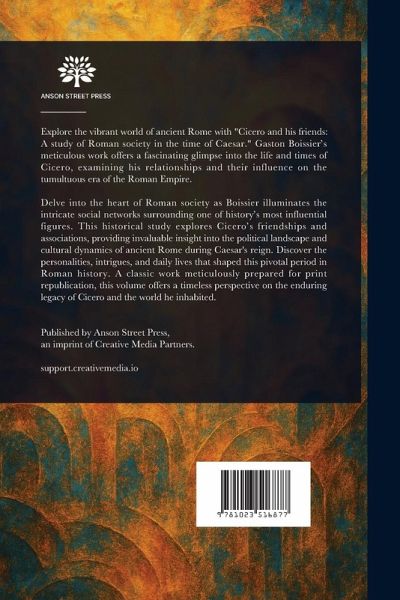 Explore the vibrant world of ancient Rome with "Cicero and his friends: A study of Roman society in the time of Caesar." Gaston Boissier's meticulous work offers a fascinating glimpse into the life and times of Cicero, examining his relationships and their influence on the tumultuous era of the Roman Empire. Delve into the heart of Roman society as Boissier illuminates the intricate social networks surrounding one of history's most influential figures. This historical study explores Cicero's friendships and associations, providing invaluable insight into the political landscape and cultural dynamics of ancient Rome during Caesar's reign. Discover the personalities, intrigues, and daily lives that shaped this pivotal period in Roman history. A classic work meticulously prepared for print republication, this volume offers a timeless perspective on the enduring legacy of Cicero and the world he inhabited. This work has been selected by scholars as being culturally important, and is part of the knowledge base of civilization as we know it. This work is in the public domain in the United States of America, and possibly other nations. Within the United States, you may freely copy and distribute this work, as no entity (individual or corporate) has a copyright on the body of the work. Scholars believe, and we concur, that this work is important enough to be preserved, reproduced, and made generally available to the public. We appreciate your support of the preservation process, and thank you for being an important part of keeping this knowledge alive and relevant.