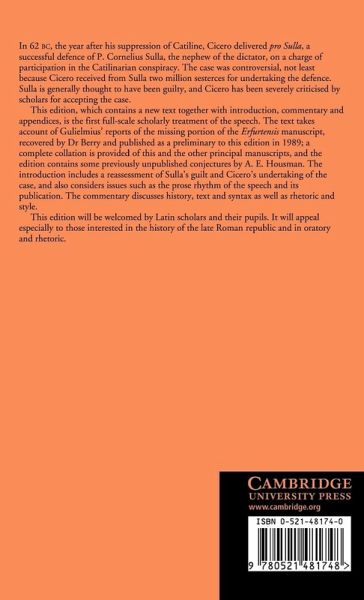 This edition is the first full-scale scholarly treatment of the speech. The introduction includes a reassessment of Sulla's guilt and Cicero's undertaking of the case, and also considers issues such as the prose rhythm of the speech and its publication.