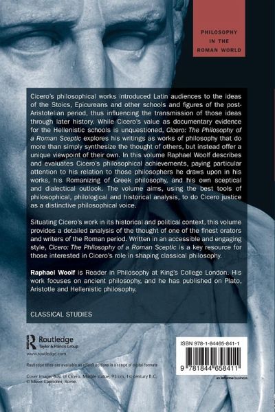 In bringing for the first time to a Latin audience the ideas of Stoics, Epicureans and other schools and figures of the post-Aristotelian period, Cicero's philosophical works have had an incalculable influence on the transmission of those ideas through later history. Raphael Woolf describes and evaluates Cicero's philosophical achievement, paying particular attention to his relation to the philosophers he draws upon in compiling his works; his Romanizing of Greek philosophy; and his own sceptical and dialectical outlook. While Cicero's value as documentary evidence for the Hellenistic schools is unquestioned, the book explores his writings as works of philosophy that do more than simply synthesize the thought of others but offer a unique viewpoint of their own. The book aims, using the best tools of philosophical, philological and historical analysis, to do Cicero justice as a distinctive philosophical voice.