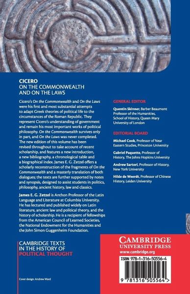 Revised throughout to take account of recent scholarship, this is the second edition of James E. G. Zetzel's readable translation of Cicero's major works of political philosophy, On the Commonwealth and On the Laws. With updated supporting materials, it is specifically designed for students in politics and philosophy, ancient history and classics.