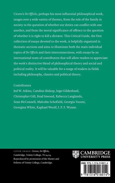 "Cicero's De Officiis is perhaps his most influential philosophical work. This Critical Guide, the first collection of essays devoted to the work, explores its richness and variety and will be valuable for a range of readers in fields including philosophy, classics and political theory"--