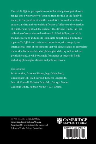 Cicero's De Officiis is perhaps his most influential philosophical work. This Critical Guide, the first collection of essays devoted to the work, explores its richness and variety and will be valuable for a range of readers in fields including philosophy, classics and political theory.