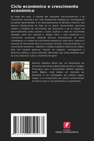 Ao longo dos anos, a questão das flutuações macroeconómicas e do crescimento económico tem sido amplamente debatida por investigadores de países desenvolvidos e em desenvolvimento na literatura empírica. Isto deve-se simplesmente ao facto de os países desenvolvidos quererem manter a trajetória de crescimento que alcançaram e de os países em desenvolvimento ainda estarem a tentar alcançar o nível de crescimento desejado. Este livro examina a relação entre o ciclo económico e o crescimento económico utilizando técnicas econométricas de séries cronológicas e o modelo de crescimento neoclássico. Além disso, examina a natureza do movimento entre as principais variáveis macroeconómicas e o crescimento económico, utilizando o método estatístico ateórico de análise. Este livro ajudará gestores, homens de negócios, investigadores e decisores políticos a tomar decisões informadas que serão benéficas para as suas empresas e para a economia em geral.