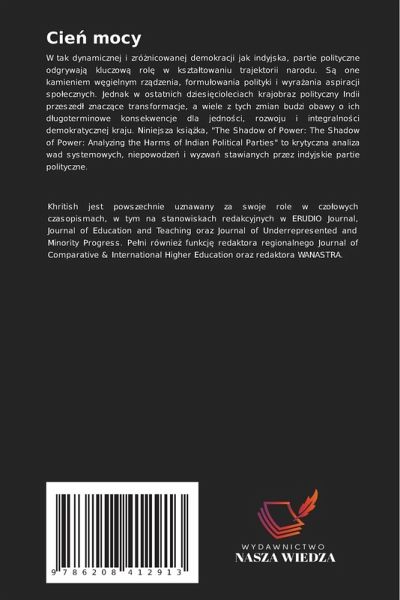 W tak dynamicznej i zró¿nicowanej demokracji jak indyjska, partie polityczne odgrywaj¿ kluczow¿ rol¿ w ksztätowaniu trajektorii narodu. S¿ one kamieniem w¿gielnym rz¿dzenia, formu¿owania polityki i wyräania aspiracji spo¿ecznych. Jednak w ostatnich dziesi¿cioleciach krajobraz polityczny Indii przeszed¿ znacz¿ce transformacje, a wiele z tych zmian budzi obawy o ich d¿ugoterminowe konsekwencje dla jedno¿ci, rozwoju i integralno¿ci demokratycznej kraju. Niniejsza ksi¿¿ka, "The Shadow of Power: The Shadow of Power: Analyzing the Harms of Indian Political Parties" to krytyczna analiza wad systemowych, niepowodze¿ i wyzwä stawianych przez indyjskie partie polityczne.