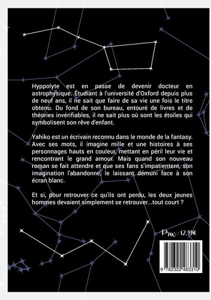 Hyppolyte est en passe de devenir docteur en astrophysique. Étudiant à l'université d'Oxford depuis plus de neuf ans, il ne sait que faire de sa vie une fois le titre obtenu. Du fond de son bureau, entouré de livres et de théories invérifiables, il ne sait plus où sont les étoiles qui symbolisent son rêve d'enfant. Yahiko est un écrivain reconnu dans le monde de la fantasy. Avec ses mots, il imagine mille et une histoires à ses personnages hauts en couleur, mettant en péril leur vie et rencontrant le grand amour. Mais quand son nouveau roman se fait attendre et que ses fans s'impatientent, son imagination l'abandonne, le laissant démuni face à son écran blanc. Et si, pour retrouver ce qu'ils ont perdu, les deux jeunes hommes devaient simplement se retrouver...tout court ?