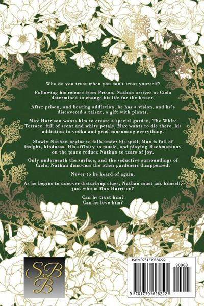 "People are not addicted to alcohol or drugs, they are addicted to escaping reality." - Anonymous Who do you trust when you can't trust yourself? Following his release from Prison, Nathan arrives at Cielo determined to change his life for the better. After prison, and beating addiction, he has a vision, and he's discovered a talent, a gift with plants. Max Harrison wants him to create a special garden, The White Terrace, full of scent and white petals, Max wants to die there, his addiction to vodka and grief consuming everything. Slowly Nathan begins to falls under his spell, Max is full of insight, kindness. His affinity to music, and playing Rachmaninov on the piano reduce Nathan to tears of joy. Only underneath the surface, and the seductive surroundings of Cielo, Nathan discovers the other gardeners disappeared. Never to be heard of again. As he begins to uncover disturbing clues, Nathan must ask himself, just who is Max Harrison? Can he trust him? Can he love him?
