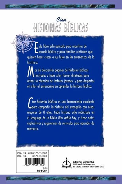 Cien historias bíblicas - Con hermosas ilustraciones este libro relata 100 de las historias más conocidas de la Biblia. Texto de Dios habla hoy. Contiene preguntas y material para reflexionar. Recurso excelente para maestros o familias. One Hundred Bible Stories- With beautiful illustrations, this book tells important Bible stories. This Good News Bible version includes questions and reflection material. It's an excellent resource for teachers and families.