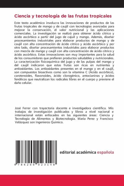 Este texto académico involucra las innovaciones de productos de las frutas tropicales de mango y de caujil con tecnologías avanzadas para mejorar la conservación, el valor nutricional y las aplicaciones comerciales. La investigación se realizó para obtener ácido cítrico y ácido ascórbico a partir del jugo de cajuil y mango. Además, diseñar procesamientos industriales para elaborar productos de mango y de caujil con alta concentración de ácido cítrico y ácido ascórbico y por otro lado, diseñar procesamientos industriales para elaborar productos con mezcla de mango y caujil con alta concentración de ácido cítrico y ácido ascórbico. Estas innovaciones son muy importantes para la salud de los consumidores que prefieren productos saludables y nutricionales. La caracterización fisicoquímica del jugo y de las pulpas del mango y del caujil indicaron que estas frutas son ricas en nutrientes y antioxidantes. Los antioxidantes presentes en el mango y en el caujil, son compuestos bioactivos como son la vitamina C (Ácido ascórbico), carotenoides, flavonoides, ácido clorogénico, antocianinas y ácidos fenólicos que neutralizan los radicales libres en el cuerpo y previene el daño celular.