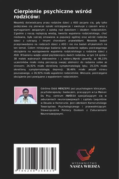 Niepokój do¿wiadczany przez rodziców dzieci z ASD zaczyna si¿, gdy tylko podejrzewa si¿ pierwsze oznaki ostrzegawcze i ewoluuje z czasem wraz z wymaganiami zwi¿zanymi z opiek¿ nad dzieckiem i ideäem rodzicielskim. Zgodnie z nasz¿ najlepsz¿ wiedz¿, kwestia wypalenia rodzicielskiego, cho¿ niedawna, by¿a szerzej omawiana w populacji ogólnej oraz w¿ród rodziców dzieci z cukrzyc¿ i innymi chorobami przewlek¿ymi. Niewiele badä przeprowadzono na rodzicach dzieci z ASD i nie ma badä afrykäskich na ten temat. Celem niniejszego badania by¿o zbadanie wp¿ywu postrzeganego obci¿¿enia na wyst¿powanie wypalenia rodzicielskiego u rodziców dzieci z ASD. W badaniu wzi¿¿o udziä pi¿¿dziesi¿ciu dwóch rodziców, w tym 14 ojców i 38 matek wybranych dobrowolnie i z wyboru.Wyniki ujawni¿y, ¿e 96,15% uczestników miäo nisk¿ percepcj¿ swojej zdolno¿ci do radzenia sobie ze stresem; 26,92% miäo okre¿lon¿ symptomatologi¿ l¿ku; 19,23% miäo okre¿lon¿ symptomatologi¿ depresji; 38,46% miäo zespó¿ stresu pourazowego, a 26,92% miäo wypalenie rodzicielskie. Wreszcie, postrzegane obci¿¿enie jest powi¿zane z wypaleniem rodzicielskim.