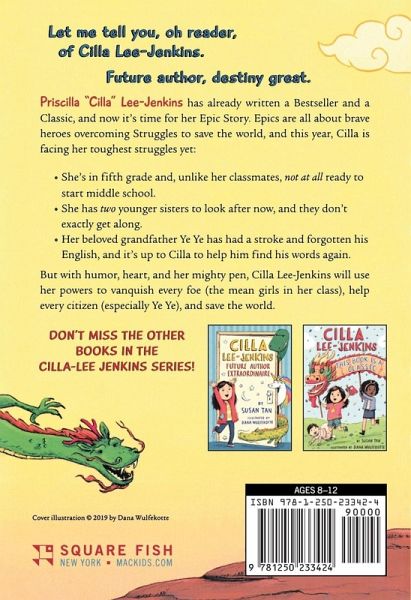 Cilla Lee-Jenkins returns to pursue her dreams of becoming a successful author while dealing with her Chinese-American family in Cilla Lee-Jenkins: The Epic Story by writer Susan Tan and illustrator Dana Wulfekotte. "Anyone who spends time with Cilla Lee-Jenkins will look forward to reading her in the future." -Booklist, starred review, on Cilla Lee-Jenkins: Future Author Extraordinaire Pricilla "Cilla" Lee-Jenkins has already written a "Bestseller" and a "Classic"-now it's time for her to write an Epic Story. Epics are all about brave heroes overcoming Struggles to save the world, and this year, Cilla is facing her toughest struggles yet: · Cilla is in fifth grade and, unlike her classmates, not at all ready to start middle school · She has two younger sisters to look after now and they don't exactly get along · Her beloved grandfather YeYe has had a stroke and forgotten his English, and it's up to Cilla to help him find his words again With humor, heart, and her mighty pen Cilla Lee-Jenkins will use her powers to vanquish every foe (the mean girls in her class), help every citizen (especially Ye Ye), and save the world.