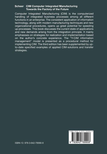Computer Integrated Manufacturing (CIM) is the computerized handling of integrated business processes among all different functions in an enterprise. The consistent application of information technology, along with modern manufacturing techniques and new organizational procedures, opens up great potential for speeding up processes. This book discusses the current state of applications and new demands arising from the integration principle. It mainly emphasizes on strategies for realization and implementation based on the author's concrete experience. The "Y-CIM information management" model is presented as a procedural method for implementing CIM. The third edition has been supplemented by up-to-date specified examples of applied CIM solutions and transfer strategies.