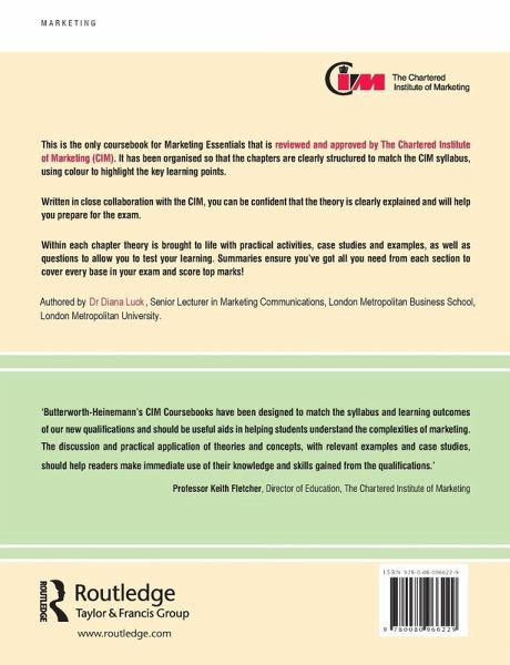'Butterworth-Heinemann's CIM Coursebooks have been designed to match the syllabus and learning outcomes of our new qualifications and should be useful aids in helping students understand the complexities of marketing. The discussion and practical application of theories and concepts, with relevant examples and case studies, should help readers make immediate use of their knowledge and skills gained from the qualifications.' Professor Keith Fletcher, Director of Education, The Chartered Institute of Marketing 'Here in Dubai, we have used the Butterworth-Heinemann Coursebooks in their various forms since the very beginning and have found them most useful as a source of recommended reading material as well as examination preparation.' Alun Epps, CIM Centre Co-ordinator, Dubai University College, United Arab Emirates Butterworth-Heinemann's official CIM Coursebooks are the definitive companions to the CIM professional marketing qualifications. The only study materials to be endorsed by The Chartered Institute of Marketing (CIM), all content is carefully structured to match the syllabus and is written in collaboration with the CIM faculty. Now in full colour and a new student friendly format, key information is easy to locate on each page. Each chapter is packed full of case studies, study tips and activities to test your learning and understanding as you go along. ¿The coursebooks are the only study guide reviewed and approved by CIM (The Chartered Institute of Marketing). ¿Each book is crammed with a range of learning objectives, cases, questions, activities, definitions, study tips and summaries to support and test your understanding of the theory. ¿Past examination papers and examiners' reports are available online to enable you to practise what has been learned and help prepare for the exam and pass first time. ¿Extensive online materials support students and tutors at every stage. Based on an understanding of student and tutor needs gained in extensive research, brand new online materials have been designed specifically for CIM students and created exclusively for Butterworth-Heinemann. Check out exam dates on the Online Calendar, see syllabus links for each course, and access extra mini case studies to cement your understanding. Explore marketingonline.co.uk and access online versions of the coursebooks and further reading from Elsevier and Butterworth-Heinemann. INTERACTIVE, FLEXIBLE, ACCESSIBLE ANY TIME, ANY PLACE www.marketingonline.co.uk