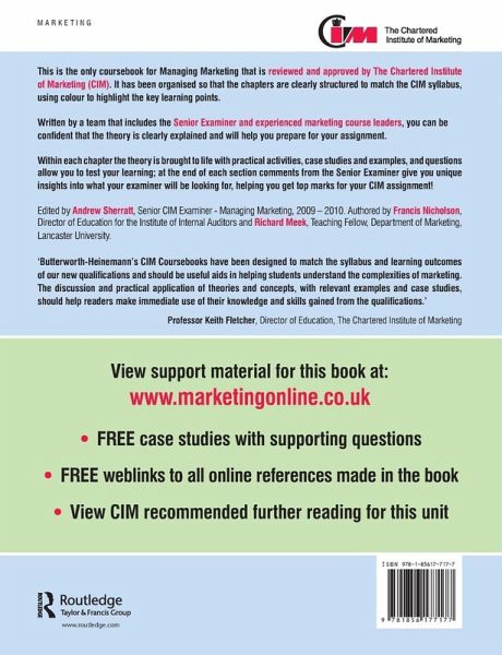 Butterworth-Heinemann's CIM Coursebooks have been designed to match the syllabus and learning outcomes of our new qualifications and should be useful aids in helping students understand the complexities of marketing. The discussion and practical application of theories and concepts, with relevant examples and case studies, should help readers make immediate use of their knowledge and skills gained from the qualifications.' Professor Keith Fletcher, Director of Education, The Chartered Institute of Marketing