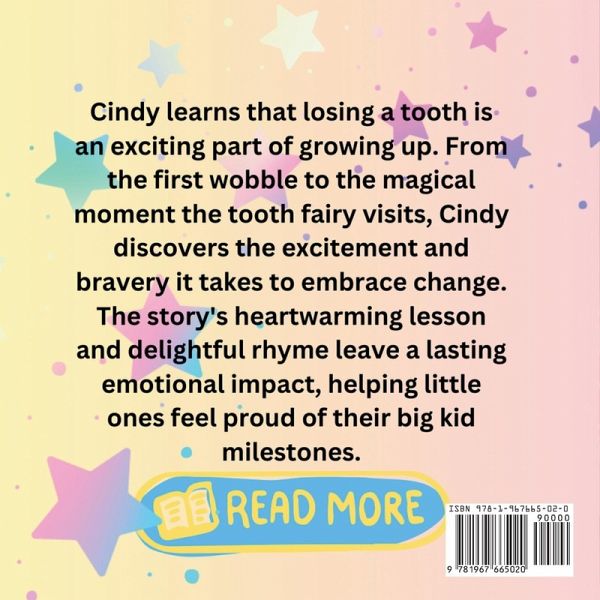 Cindy learns that losing a tooth is an exciting part of growing up. From the first wobble to the magical moment the tooth fairy visits, Cindy discovers the excitement and bravery it takes to embrace change. The story's heartwarming lesson and delightful rhyme leave a lasting emotional impact, helping little ones feel proud of their big kid milestones.