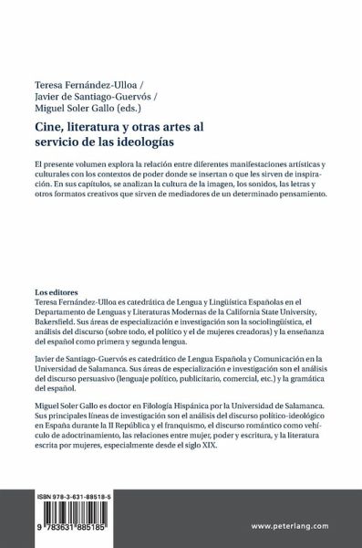 Teresa Fernández-Ulloa es Professor/Catedrática de Lengua y Lingüística Españolas en el Departamento de Lenguas y Literaturas Modernas de la California State University, Bakersfield. Sus áreas de especialización e investigación son la sociolingüística, el análisis del discurso (sobre todo, el político y el de mujeres creadoras) y la enseñanza del español como primera y segunda lengua. Javier de Santiago-Guervós es Catedrático de Lengua Española y Comunicación en la Universidad de Salamanca.¿Sus áreas de especialización e investigación son el análisis del discurso persuasivo (lenguaje político, publicitario, comercial, etc.) y la gramática del español. Miguel Soler Gallo es doctor en Filología Hispánica por la Universidad de Salamanca. Sus principales líneas de investigación son el análisis del discurso político-ideológico en España durante la II República y el franquismo, el discurso romántico como vehículo de adoctrinamiento, las relaciones entre mujer, poder y escritura, y la literatura escrita por mujeres, especialmente desde el siglo XIX.