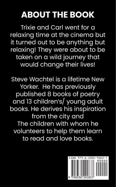 Trixie and Carl went for a relaxing time at the cinema but it turned out to be anything but relaxing! They were about to be taken on a wild journey that would change their lives! Steve Wachtel is a lifetime New Yorker. He has previously published 8 books of poetry and 7 children's books. He derives his inspiration from the city and the children with whom he volunteers to help them learn to read and love books.