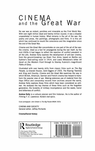 Cinema and the Great War concentrates on one part of the art of the war: the cinema. Used as tool for propaganda during the war itself, by the mid 1920s cinema had begun to reflect the rejection of conflict prevalent in all the arts. Andrew Kelly explores the development of anti-war cinema in, Britain, America, Germany and France from the ground-breaking Lay Down your Arms, made by Bertha Von Suttner in 1914 and Lewis Milestone's bitter All Quiet on the Western Front through to Stanley Kubrick's magnificent Paths of Glory.