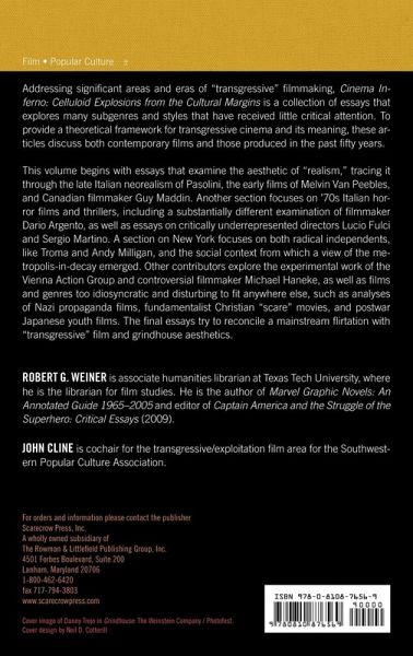 Cinema Inferno: Celluloid Explosions from the Cultural Margins addresses significant areas (and eras) of "transgressive" filmmaking, including many subgenres and styles that have not yet received much critical attention. This collection of essays covers both contemporary films and those produced in the last 50 years to provide a theoretical framework for looking at transgressive cinema and what that means. This volume begins with a number of essays that examine the aesthetic of "realism," tracing it through the late Italian Neo-Realism of Pasolini, the early films of Melvin Van Peebles, and Canadian filmmaker Guy Maddin. Another section focuses on '70s Italian horror and thrillers, including a substantially different examination of filmmaker Dario Argento, as well as essays on critically underrepresented directors Lucio Fulci and Sergio Martino. A section on New York looks at both radical independents like Troma and Andy Milligan, as well as the social context from which a view of the metropolis-in-decay emerged. Sections also cover the experimental work of the Vienna Action Group and controversial filmmaker Michael Haneke, as well as films and genres too idiosyncratic and disturbing to fit anywhere else, including analyses of Nazi propaganda films, fundamentalist Christian "scare" movies, and postwar Japanese youth films. The final essays try to come to terms with a mainstream flirtation with "transgressive" film and Grindhouse aesthetics.